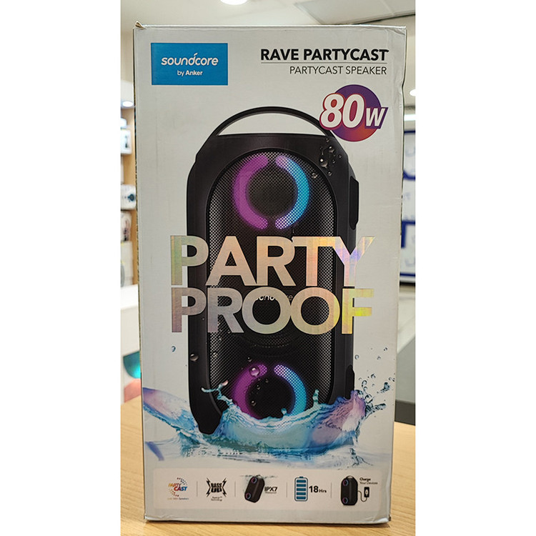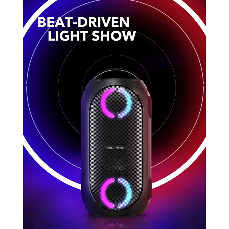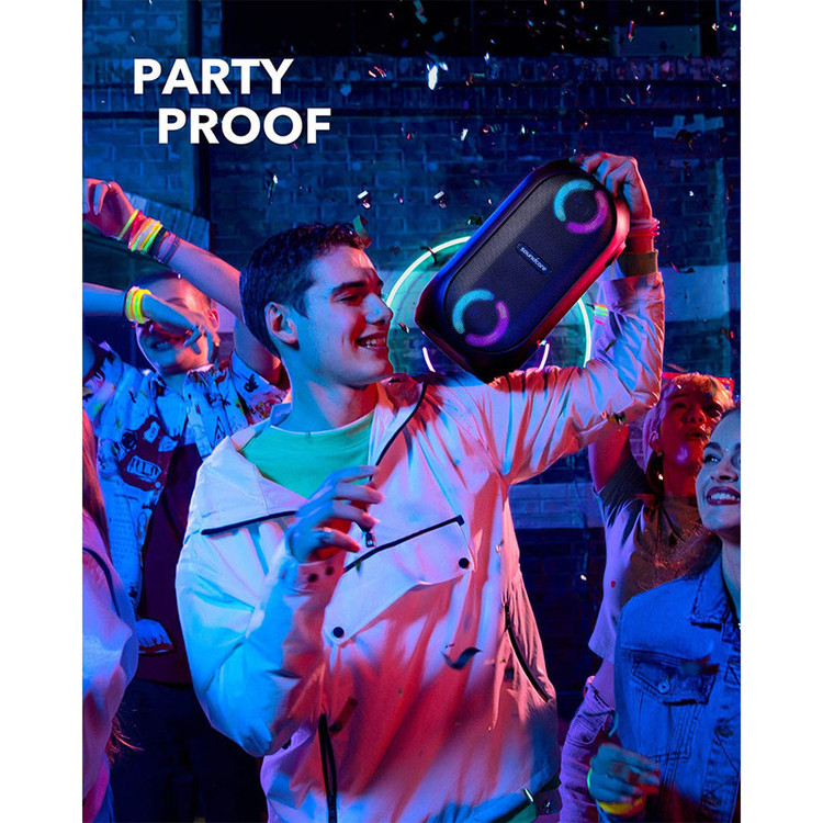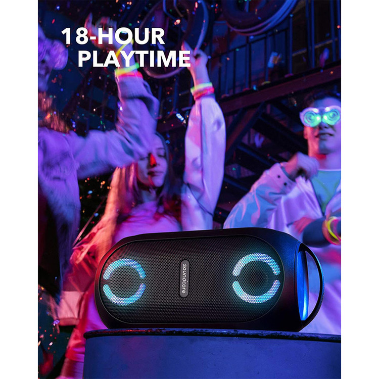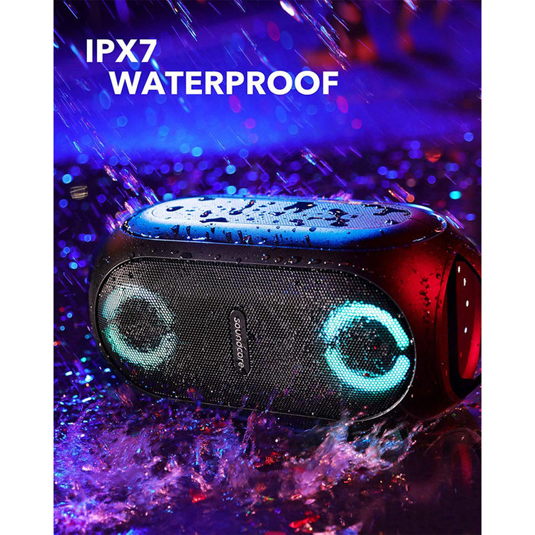 اسپیکر انکر مدل Soundcore Rave Mini قدرت صدا 80 وات دارد و بهترین کیفیت و حجم به لطف تکنولوژی تقویت صدا BassUpTM ارائه میدهد. توسط یک ووفر 5.25 اینچی، رادیاتور منفعل و تیوتر 2 اینچ پمپ می شود. حجم را افزایش دهید و یک مهمانی را در تقریبا هر فضای داخلی یا در فضای باز پوشش میدهد. اسپیکر انکر Rave Mini دارای استاندارد IPX7 است، به این معنی که در برابر ریختن آب روی آن مقاوم است. اگر نوشیدنی رو اسپیکر بریزد، یا باران غیر منتظره ببارد نگرانی نخواهید داشت. برای استفاده زیر آب مقاوم نیست. الگوریتم Rave Party Lighting و DSP ، چراغ LED را مناسب با آهنگ و ریتم هماهنگ می کنند. بهترین تجربه با ویژگی رقص نور DJ در برنامه Soundcore خود تجربه کنید. باتری لیتیوم یون با تکنولوژی انحصاری انکر، تا 18 ساعت بدون توقف موسیقی پخش میکند. همچنین به عنوان پاوربانک نیز عمل میکند و با اتصال گوشی به پورت USB آن را شارژ کنید.