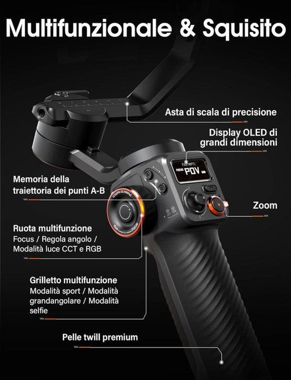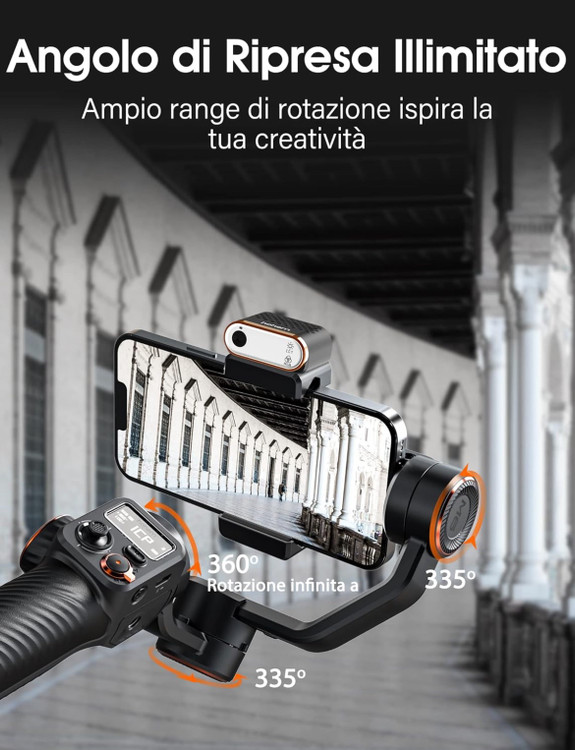 ساختار 3 محور ارتقا یافته آن حرکت آزادانه را از همه زوایا ارائه می دهد. بهعلاوه، چرخش متحرک بینهایت 360 درجه، سیستم لرزشگیر iSteady 7.0 و موارد دیگر به شما این امکان را میدهد که حتی هنگام فیلمسازی انفرادی، عکسهای خیرهکننده و حماسی بگیرید.