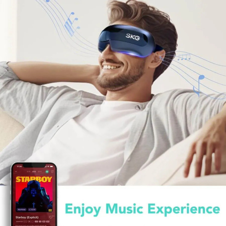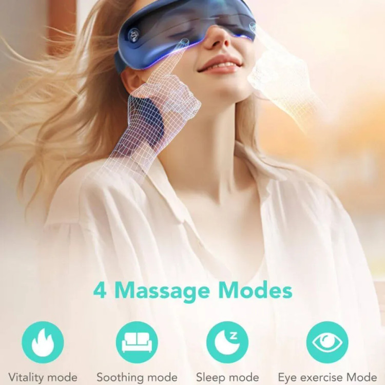 این محصول مخصوص ماساژ دور چشم می باشد که با گرم کردن دور چشم و هم زمان ماساژ دور چشم تمام خستگی روز از بین می برد و بعد ۵ دقیقه استفاده پلک شما را سنگین کرده و به خواب خواهید رفت. این دستگاه هنگام ماساژ برای شما اهنگ هم پخش می کند که هم می توانید از موزیک خود دستگاه استفاده کنید و هم با می توانید با گوشی به دستگاه متصل شود و موزیک دلخواه خود را گوش کنید.