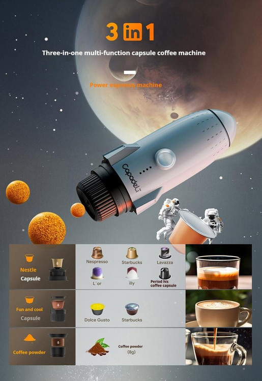 محبوبترین محصول این برند، قهوهساز شارژی است که امکان تهیه اسپرسو یا قهوه با کپسول یا پودر را در هر مکانی فراهم میسازد. این دستگاهها با باتری داخلی، قابلیت شارژ با USB-C و طراحی ضدنشت، مناسب سفر، محل کار یا فضای بیرونی هستند