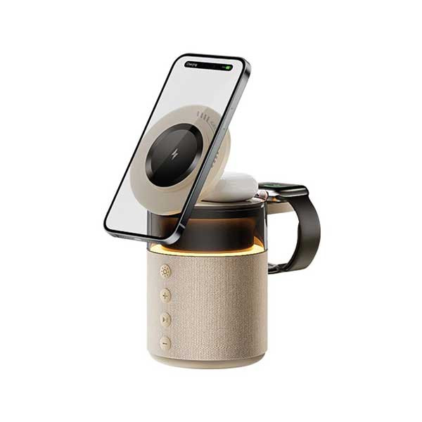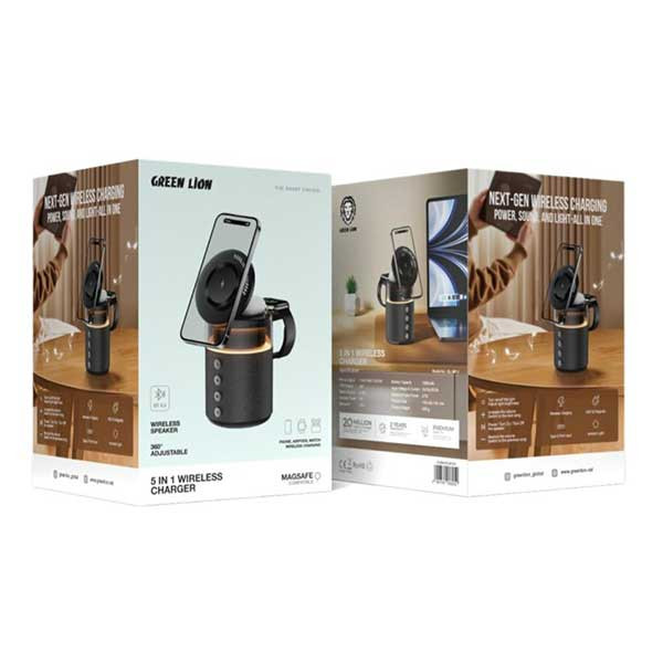 شارژر وایرلس گرین لاین ۵ کاره مدل Green Lion 5-in-1 Wireless Charger با اسپیکر بلوتوثی