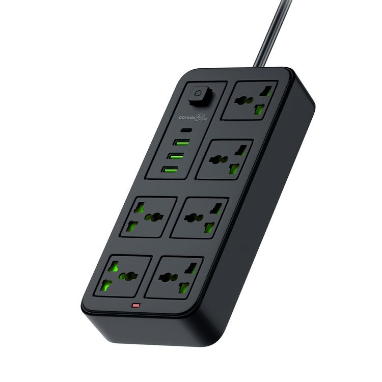 چندراهی برق Porodo Blue 6 Universal Sockets، یک راهکار برقرسانی زیبا و مشکی رنگ است که ضروری است. این چندراهی برق برای انواع دستگاههای الکترونیکی ایدهآل است زیرا برای رفع طیف وسیعی از نیازهای الکتریکی ساخته شده است. این چندراهی برق دارای جریان نامی 10 آمپر و محدوده ولتاژ 220-250 ولت است. این چندراهی برق با خروجی شگفتانگیز 2000 وات AC، عملکرد بیصدا و مؤثر دستگاههای شما را تضمین میکند . برای سهولت بیشتر در استفاده، این چندراهی برق دارای شش دوشاخه AC جهانی است که امکان استفاده از انواع مختلف دوشاخه را فراهم میکند. همچنین دارای یک کابل 3 متری است . این امر قرارگیری آن را در هر اتاقی آسان میکند. این چندراهی با سه اتصال USB-A و یک پورت USB-C، طیف وسیعی از گزینههای شارژ را برای افرادی که به دستگاههای USB وابسته هستند، فراهم میکند. این دستگاه برای کسانی است که به یک ایستگاه شارژ خوب نیاز دارند.