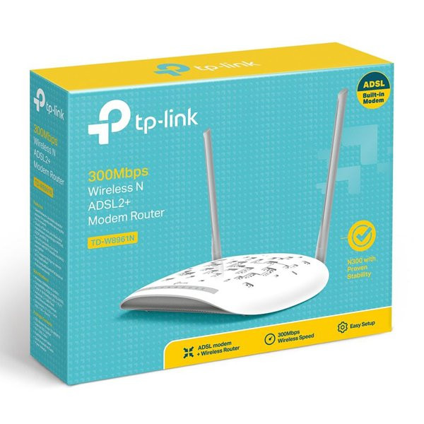مودم TD-W8961N تولید شده توسط شرکت TP-Link، یک مودم روتر ADSL2 PLUS با سرعت بی سیم ۳۰۰ مگابایت در ثانیه است. که مناسب کاربری خانگی می باشد. کاربران این مودم روتر با استفاده از استاندارد وایرلس 802.11G میتوانند از پهنای باند مناسبی برخوردار باشند.