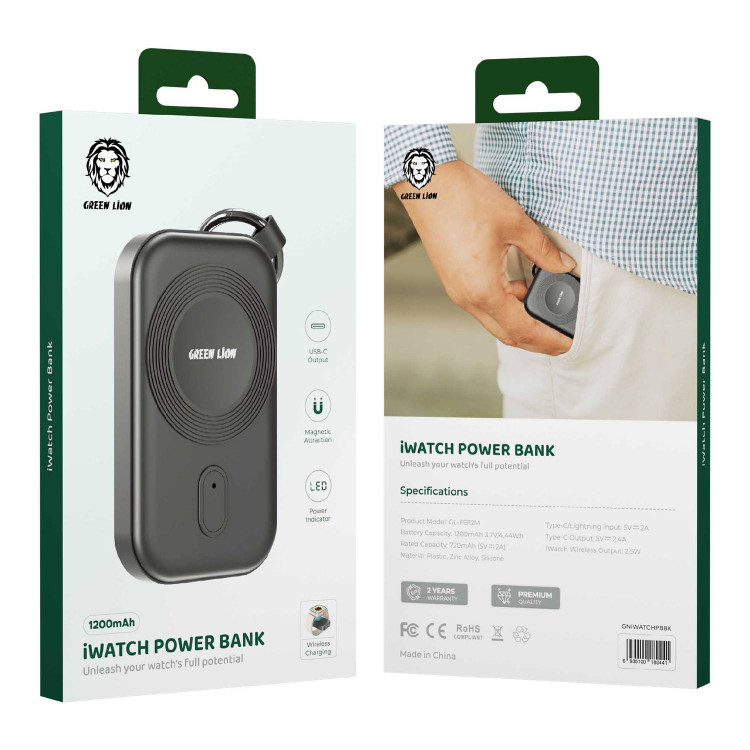پاوربانک iWatch 1200mAh Green Lion یک پاوربانک جمع و جور و سبک وزن است که به طور خاص برای شارژ اپل واچ طراحی شده است. با قابلیت شارژ بی سیم، می توانید ساعت خود را به سادگی روی پد قرار دهید تا شارژ شود. همچنین دارای یک حلقه جاذبه مغناطیسی است تا ساعت شما را به طور ایمن در جای خود نگه دارد.